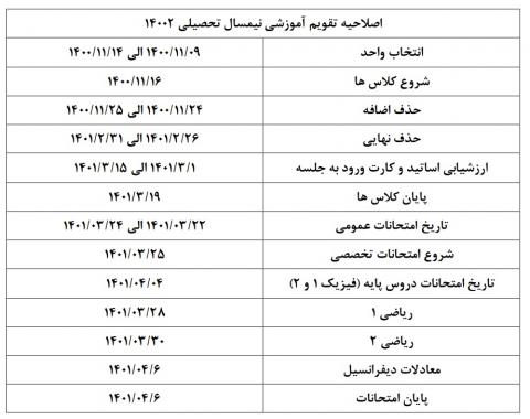 2- تاریخ برگزاری امتحانات دروس اختصاصی دانشکده هایی که کلاس های آن ها به صورت حضوری برگزار شده است از 1401/3/25 الی 1401/4/6 خواهد بود.