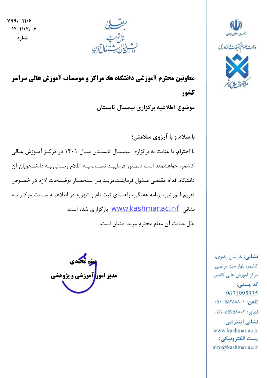 اطلاعیه برگزاری ترم تابستان در دانشگاه ها و موسسات آموزش عالی کشور