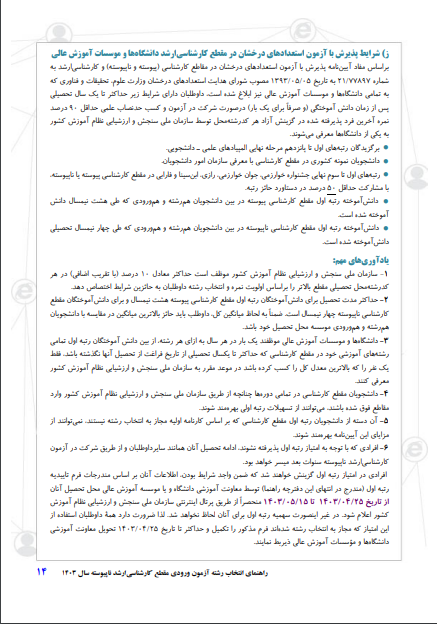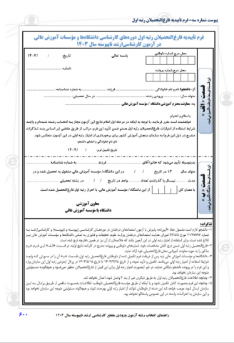 درج مشخصات دانش آموختگان رتبه اول دوره کارشناسی دانشگاه در پرتال سازمان سنجش برای اعمال امتیاز رتبه اولی در آزمون ورودی دوره های کارشناسی ارشد ناپیوسته سال 1403