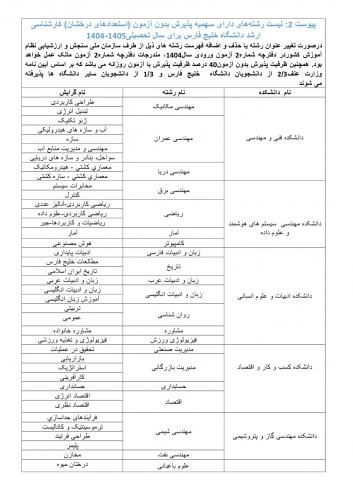 فراخوان پذیرش بدون آزمون (استعداد درخشان) مقاطع کارشناسی ارشد و دکتری دانشگاه خلیج فارس برای سال تحصیلی 1405-1404