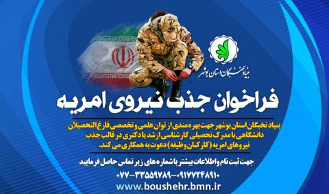 فراخوان | جذب نیروهای امریه (کارکنان وظیفه) در بنیاد نخبگان استان بوشهر