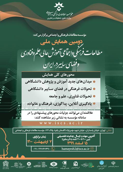 دومین همایش ملی “مطالعات فرهنگی و اجتماعی آموزش عالی، علم و فناوری و فضای سایبر در ایران”، هفتم اردیبهشت ماه ۱۴۰۰ به همت موسسه مطالعات فرهنگی و اجتماعی برگزار میشود.