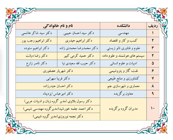 اسامی سرآمدان آموزشی دانشگاه خلیج فارس