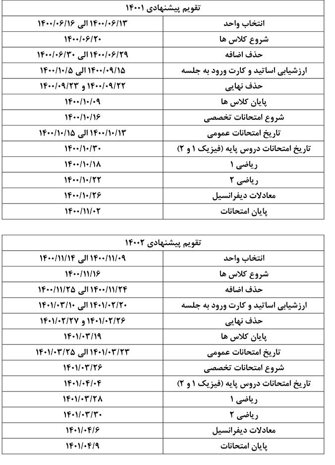 تقويم آموزشی نيمسال 14001