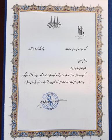 عباس زال زاده دانشجوی مقطع کارشناسی ارشد رشته آمار دانشگاه خلیج فارس با شرکت در فراخوان جایزه ادبی دانشجویی سراسر کشور که به همت دانشگاه علوم پزشکی ایران برگزار شد، توانست مقام اول را در بخش داستان کوتاه کسب کند.