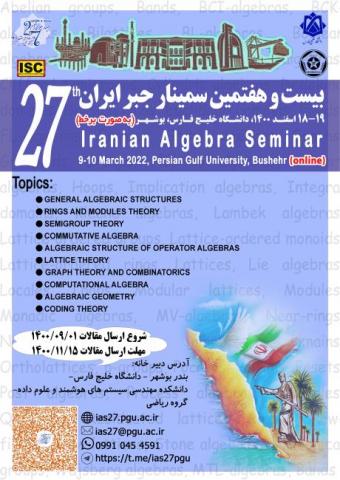 لینک وبسایت سمینار:بیست و هفتمین سمینار جبر ایران، ۱۸-۱۹ اسفند ۱۴۰۰، دانشگاه خلیج فارس، بوشهر