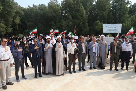 جمعی ازدانشجویان، کارکنان و اساتید دانشگاه خلیج فارس امروز بعد از نماز ظهر و عصر حادثه تروریستی حرم مطهر احمد بن موسی(ع) را محکوم کردند.