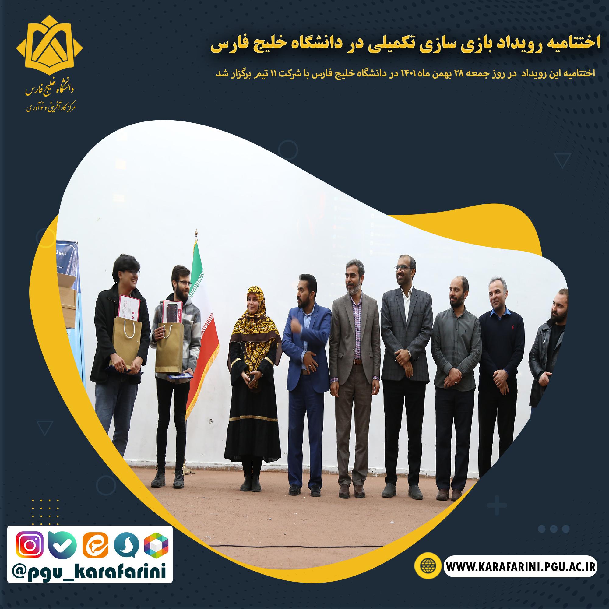 این رویداد با هدف کشف استعدادهای ناشناخته صنعت بازی و تربیت نیروی انسانی متخصص مورد نیاز این صنعت، از ۲۳ تا ۲۸ بهمنماه در مرکز کارآفرینی و نوآوری دانشگاه خلیج فارس، با همکاری پارک علم و فناوری و بنیاد ملی نخبگان استان بوشهر برگزار گردید.