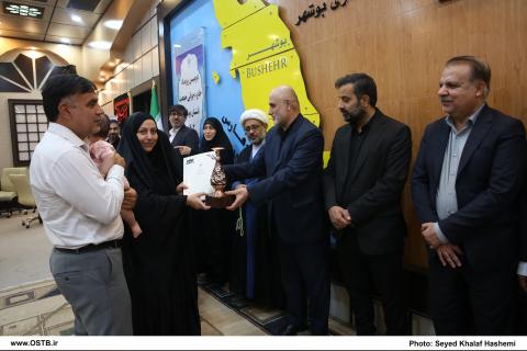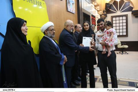 در ادامه، از خانواده ۷ نفره عضو هیات علمی و دانشجوی دانشگاه خلیج فارس به دلیل دارا بودن فرزند در سن مناسب فرزندآوری همزمان با تحصیل تقدیر شد.