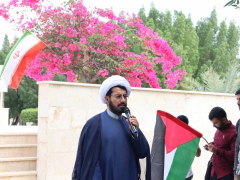 تجمع دانشجویان دانشگاه خلیج فارس در محکومیت جنایات رژیم صهیونسیتی در حمایت از مردم مظلوم و مقاوم غزه، امروز بعد از نماز ظهر و عصر برگزار شد.