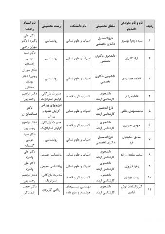 آثار راه یافته از دانشجویان تحصیلات تکمیلی حوزه‌هایی چون روانشناسی، تاریخ، زبان و ادبیات فارسی، مدیریت بازرگانی، تربیت‌بدنی و ریاضی کاربردی را پوشش می‌دهند. جدول اسامی راه یافتگان به شرح زیر است: