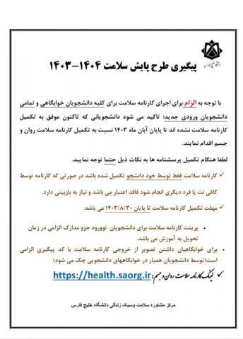 همراه با شادباش به شما پذيرفته شدگان ارجمند کارشناسی ارشد سال آموزشی 1404-1403، دانشگاه خلیج فارس توجه پذيرفته شدگان گرامی را به نکته های زير جلب مى كند: